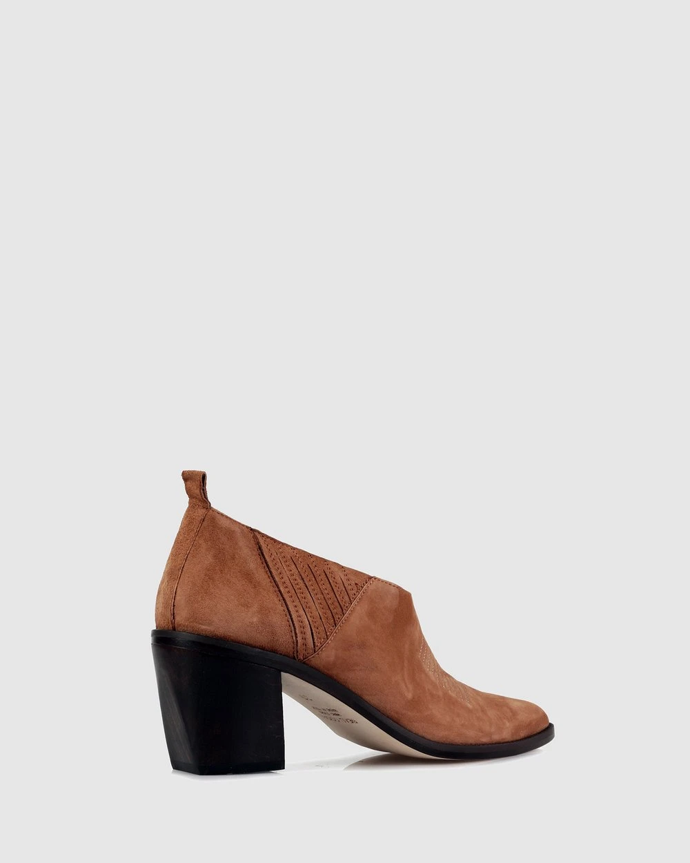 The Jermina courtshoes by Beau Coops are made in Italy, with soft leather in fresh white, earthy brown or lustrous black. A sloping topline and elongated toe serve sleek lines and a clean silhouette, with a block mid-heel for the perfect boost of height. Cowboy-style stitching details the upper, with elasticated side gussets for further texture and tone. The low profile perfectly accommodates cropped jeans or slips over stockings.