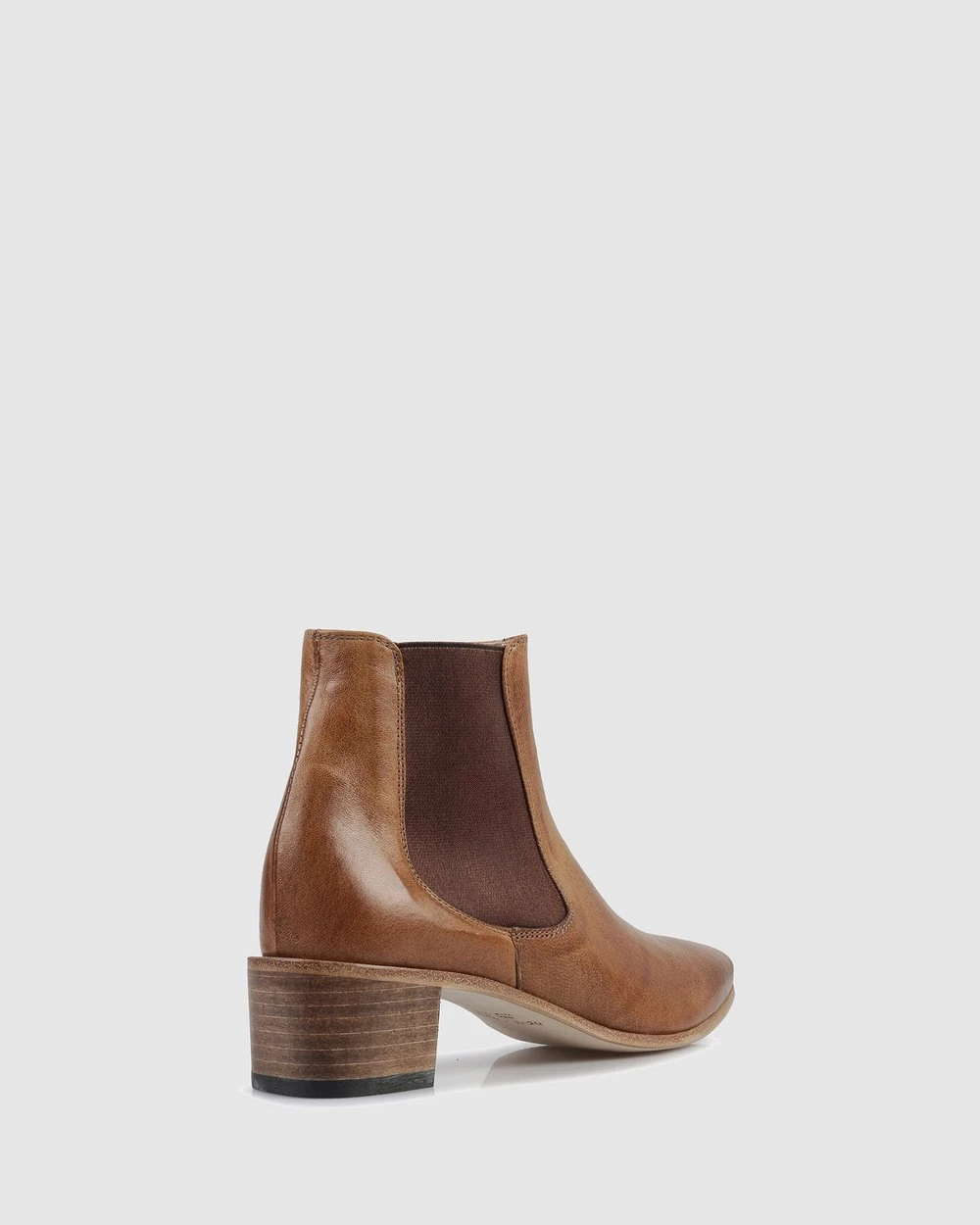 The Beau Coops Lumier Ankle Boots strike the perfect balance between timelessness and trending. Made in Italy from supple premium calf leather, these western inspired chelsea boots feature elastic side gussets, a pointy toe and leather stacked heel.