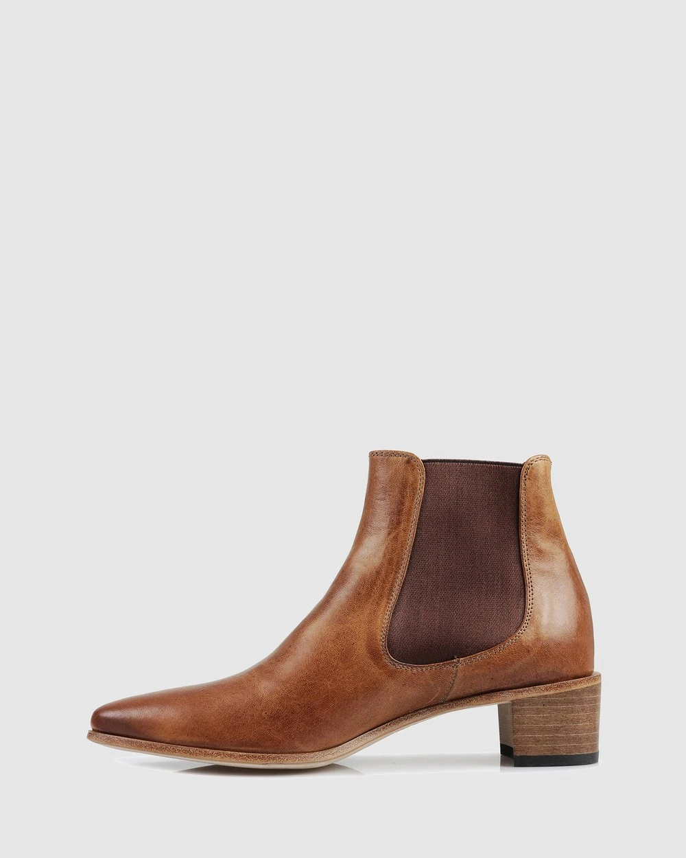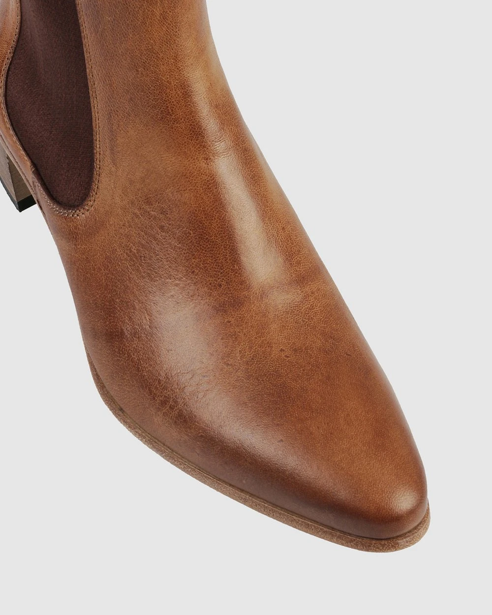 – Made in Italy- Pointy toe- Elastic side gussets- Leather stacked heel