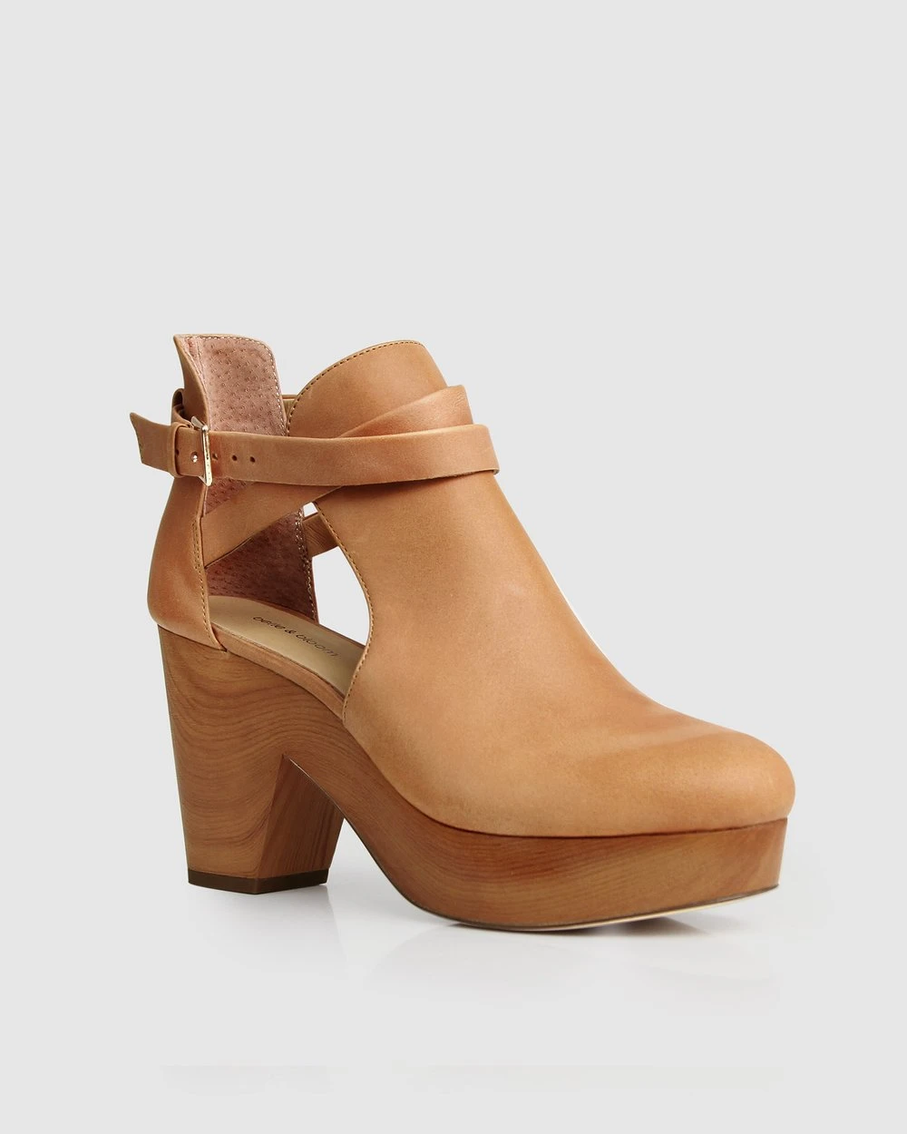 Classic clog styling gets an update in this stylish 70’s inspired ankle boot, lifted by a woodgrain platform and heel. The Fearless Clog Ankle Boot by Belle and Bloom features edgy side cut-outs and is finished with adjustable crossover ankle straps.