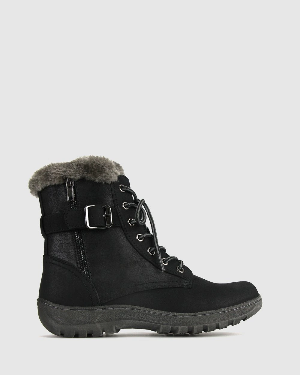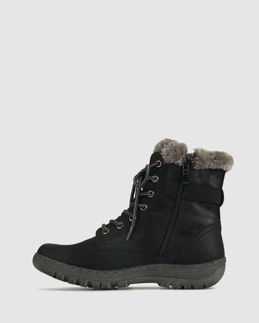 The Betts Army Faux Fur Ankle Boots feature side zip fastening and cleated outsole and are part of the on-trend yet versatile Betts collection which