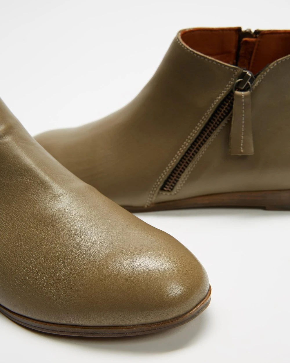 With their side-zip entries and subtle wood-look heel, the Halo boots from Bueno underscore a rustic wardrobe staple.