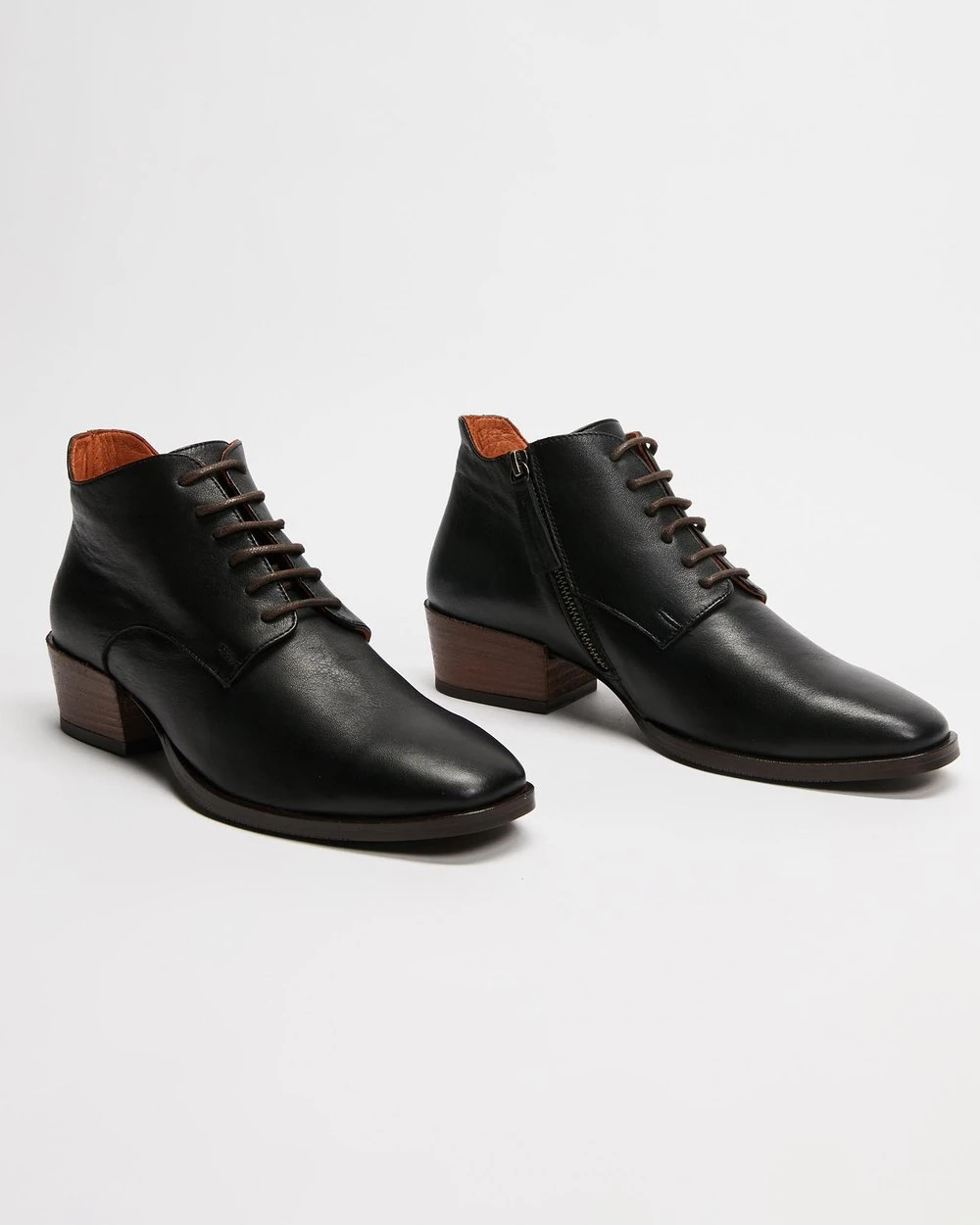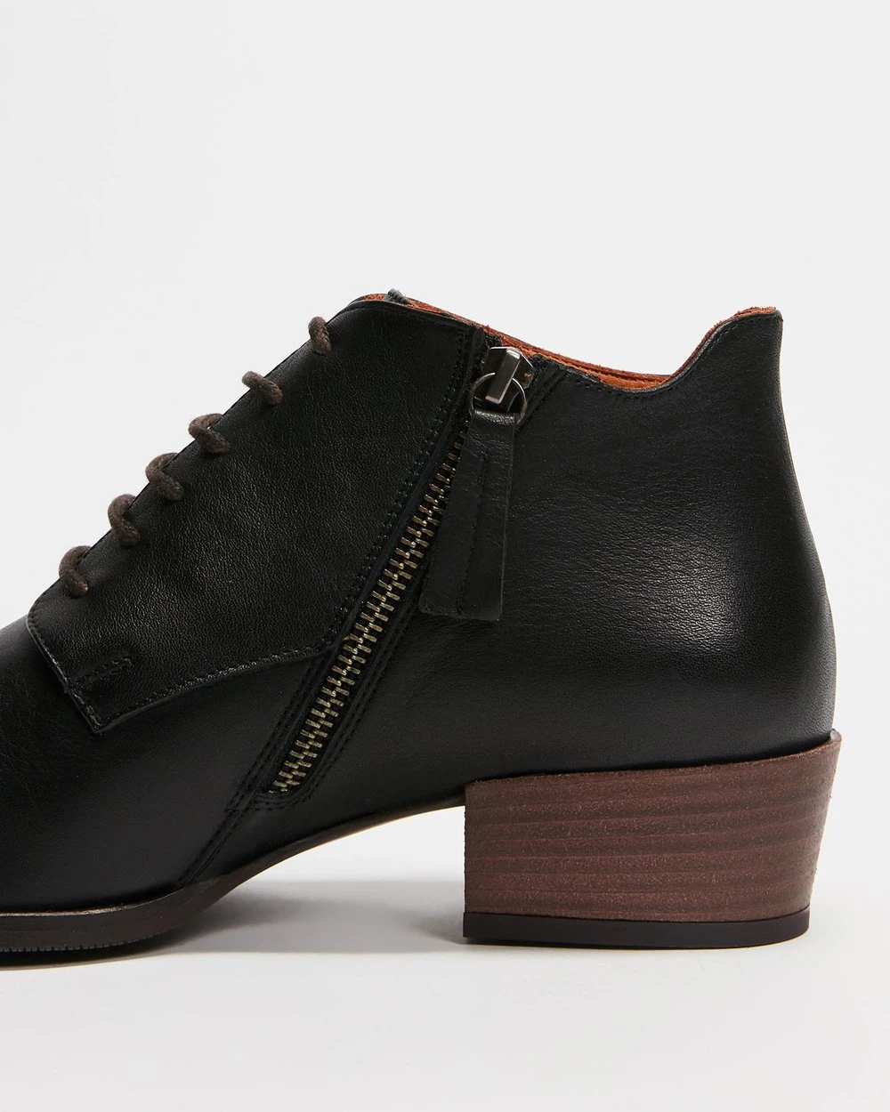 The Neave lace-up ankle boots by Bueno boast a lightly squared toe and soft genuine leather craftmanship. Style with a crisp white shirt to keep things clean and sleek.
