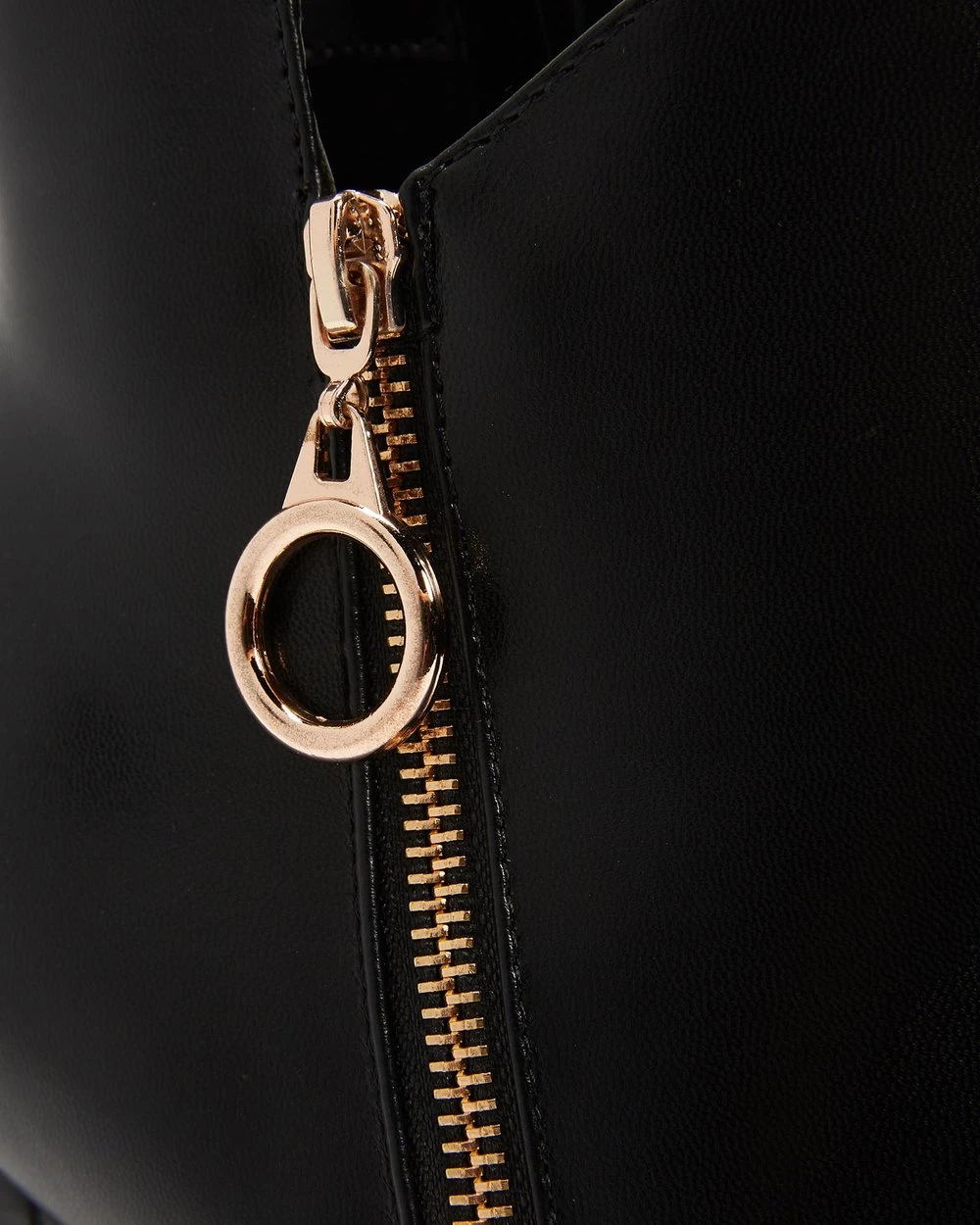 – Smooth faux leather upper; rose gold-toned metal zips on side