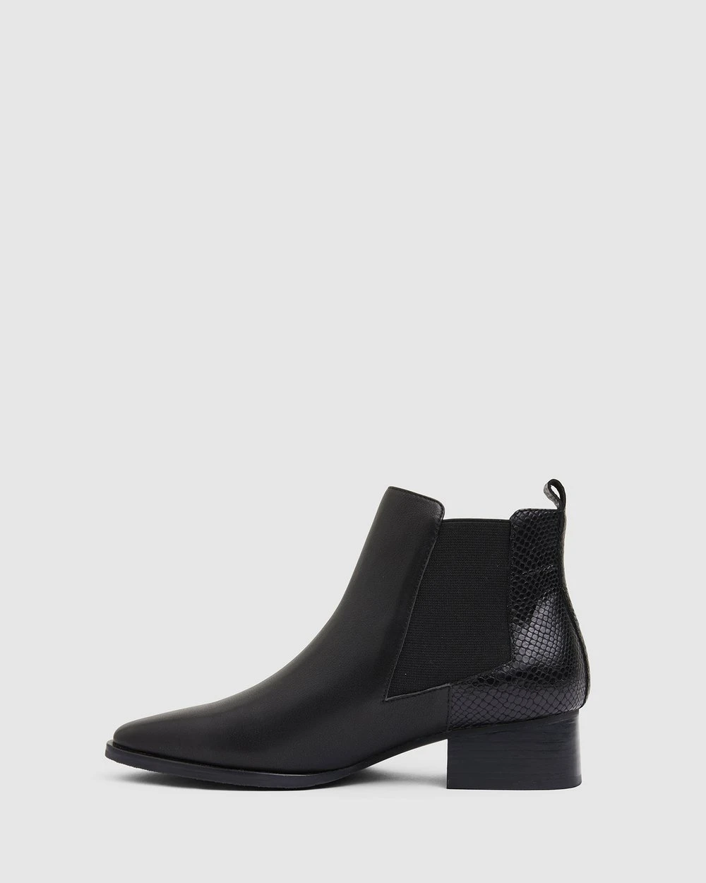 – Approx. 4cm heel height – Leather upper, Leather lining & Synthetic sole – Contrasted snake print panel design- Standard fit (B-fit)- Comfortable block heel for all day wear- Non-slip grip sole- Added under-foot padding for extra comfort