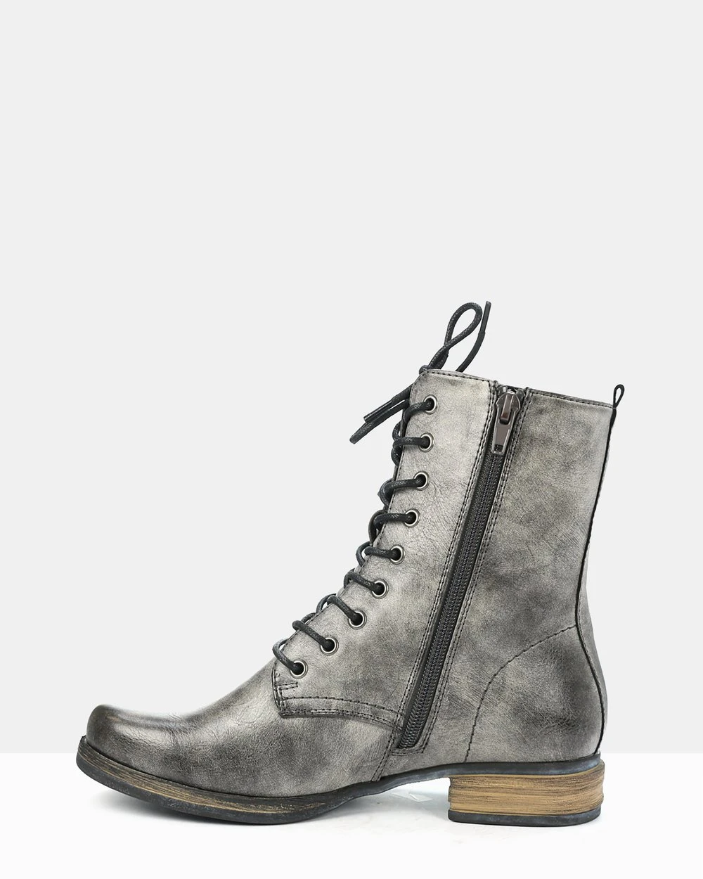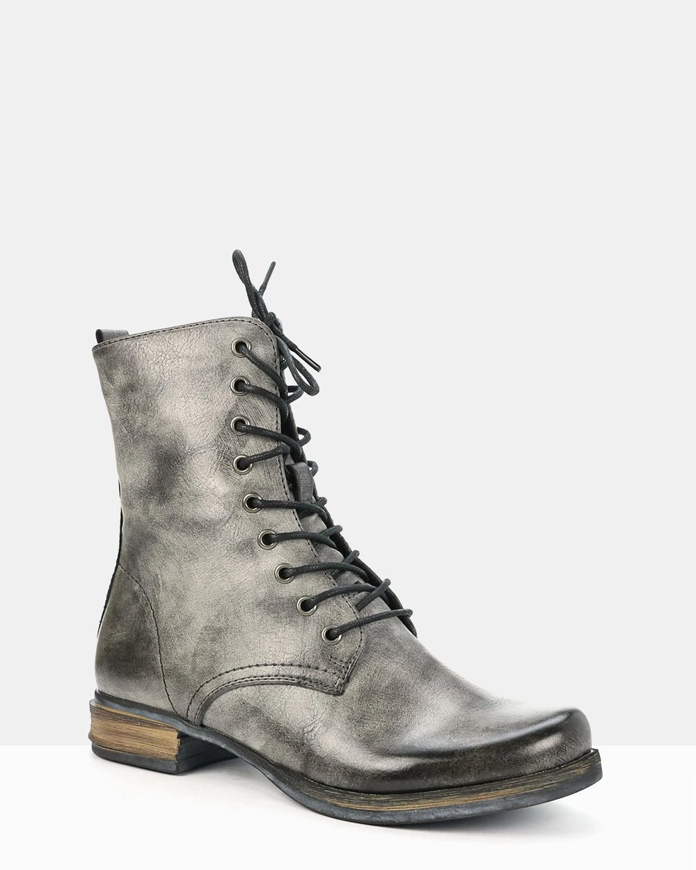 Turn heads in the Los Cabos Cora combat boot in black or unique cement. The hand-finished detail and Italian design ignites an urban aesthetic, ideal for injecting attitude into your off-duty outfitting.
