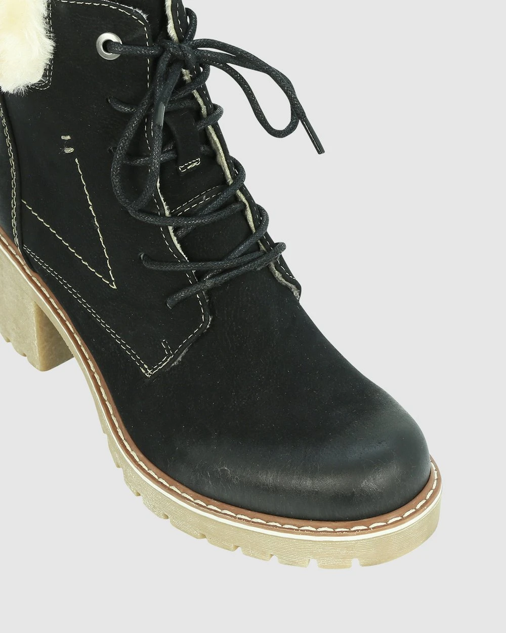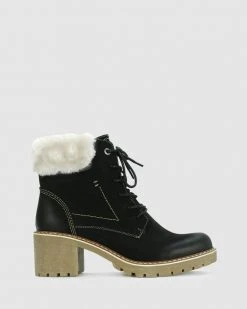 Meet your expectations wearing the Elisa from Los Cabos. This round toe boot marks chilly days in a memorable padded faux shearling collar and lining of joyful snugness. Quality side zip fastenings for ease of wear, secure lace-up frontage, bold contoured stitch, and a winter-ready heeled chunky cleated sole all help to keep spirits high as the barometer drops.