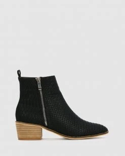– Festival boots – Black snake embossed boots- Perfect winter boots – Croc embossed designer styling – Refined wooden stack heel – Festival elegance – Dual side zip easy entry – Almond toe boots