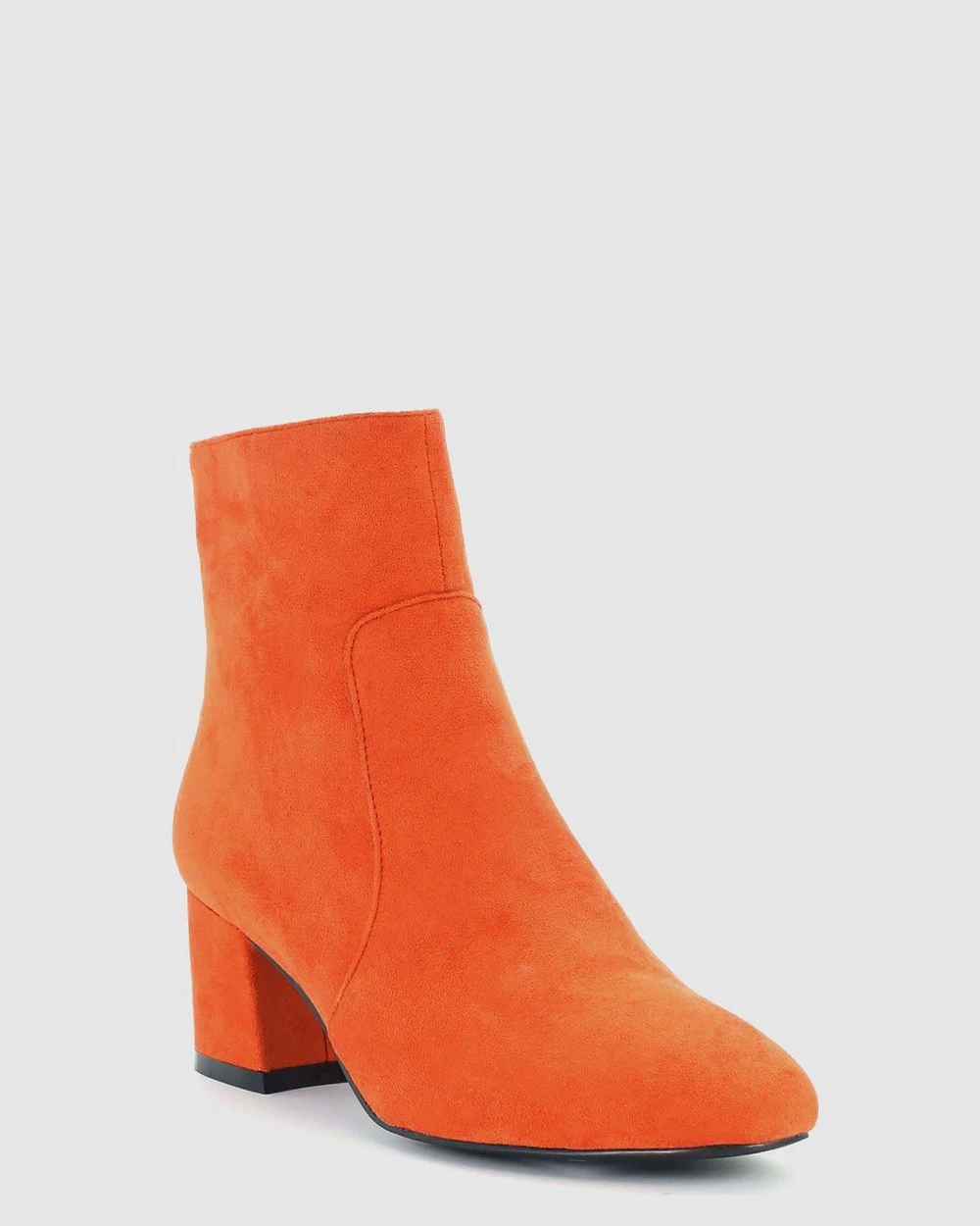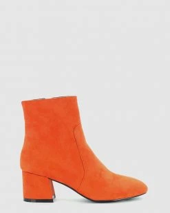 – Vintage ankle booties- Insize zip for fastening – Metal eyelets- Mid-height flared heel – Orange boots