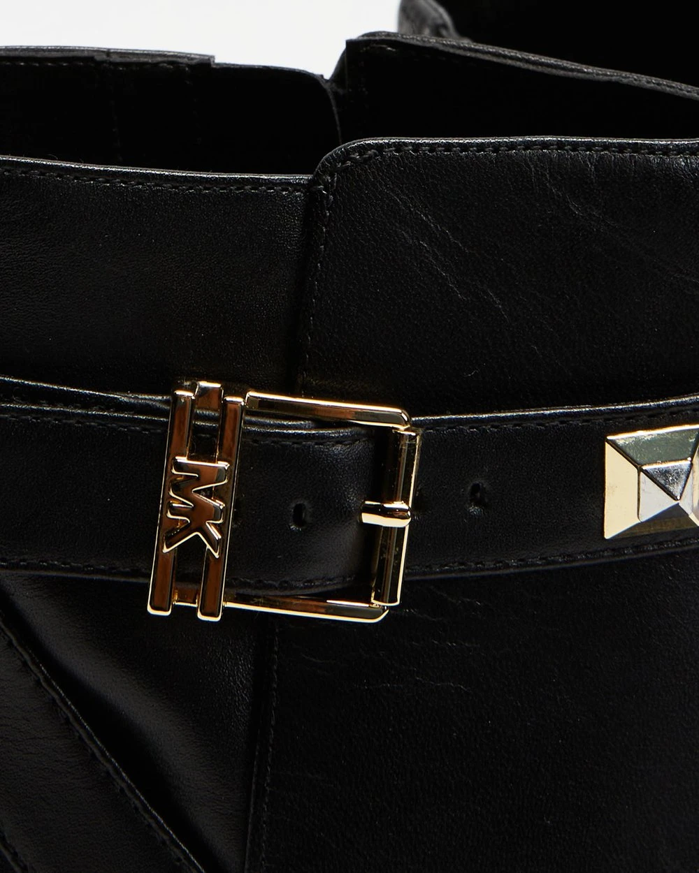 from Michael Kors. Fashioned with genuine smooth leather on a low-profile block heel and accented with a polished silver-toned buckle.