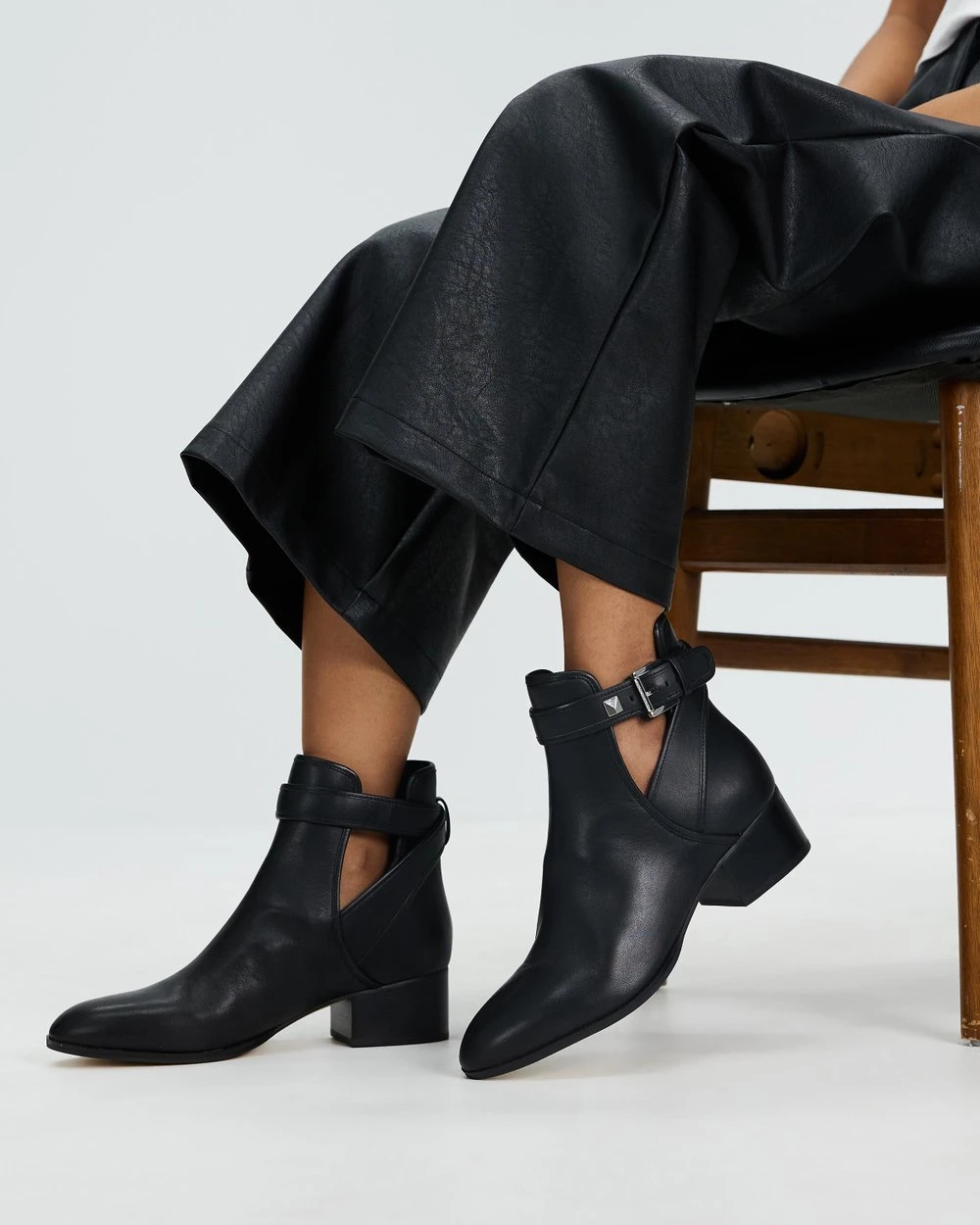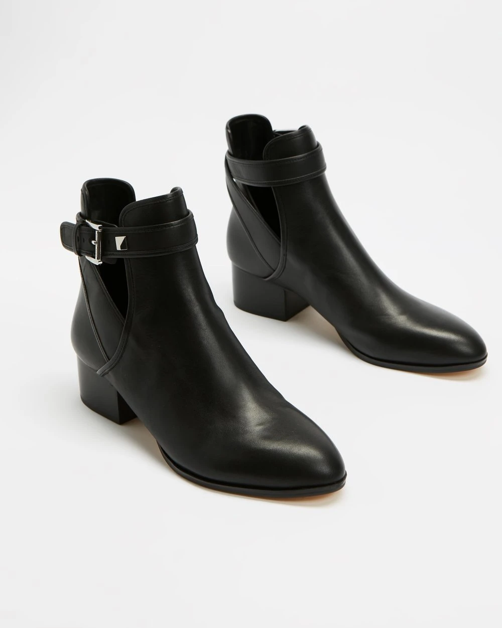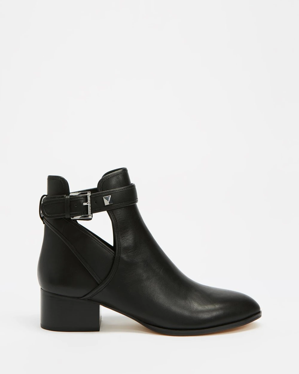 Update your everyday boot with some designer class Britton Booties from Michael Kors. Fashioned with genuine smooth leather on a low-profile block heel with accented side cutouts and an adjustable grunge inspired buckle.