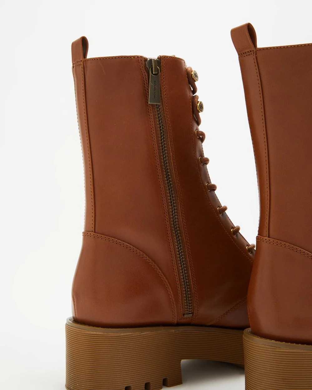 Designer Michael Kors is an icon of American fashion, and his eponymous brand is renowned around the world for its premium accessories and clean, sports-inspired aesthetic. In a refined silhouette, the rich cognac-hued Bryce Booties draw inspiration from combat boot aesthetics for a timeless tread.