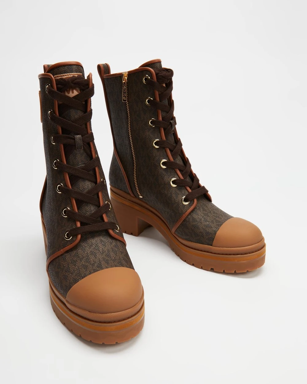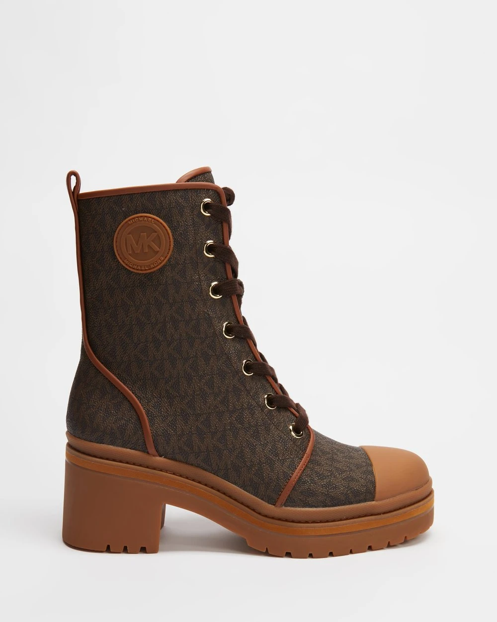 Make a statement with the monogrammed Corey Booties from Michael Kors, featuring a rounded outer logo patch and chunky heel that’s perfect for unlocking those weekend vibes.