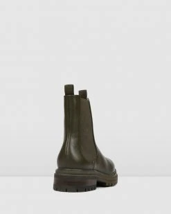 Jo Mercer Bloom Flat Ankle Boots OLIVE GREEN LEATHER