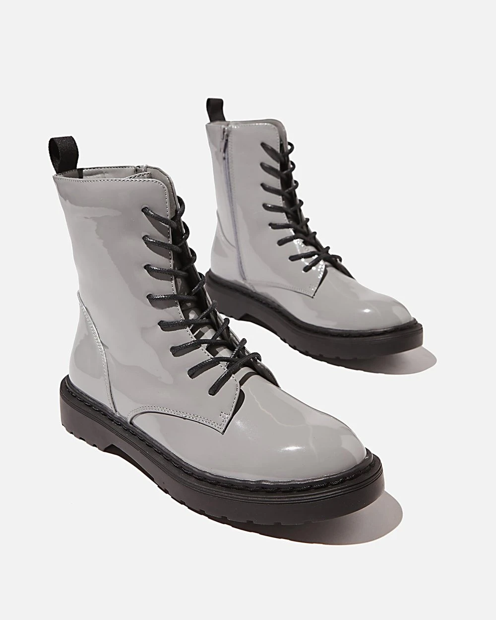 – Faux patent leather upper