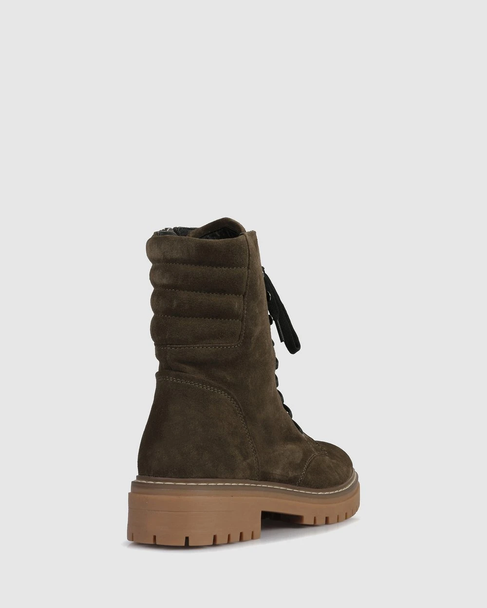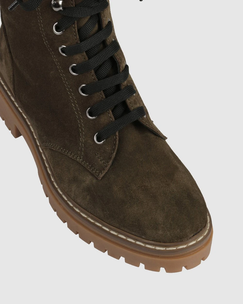Set on a chunky lugged sole, the Shattuck Ankle Boots by S by Sempre di evoke a utalitarian mood. They are crafted from suede leather and feature a round toe, tonal fabric laces and ribbed cuffs around the ankle. The sturdy rubber sole and leather padded insoles make this the perfect boot for long days on your feet.-Suede leather upper-Tonal laces-Silver eyelets-Round toe-Leather lining and insole-Rubber tread sole