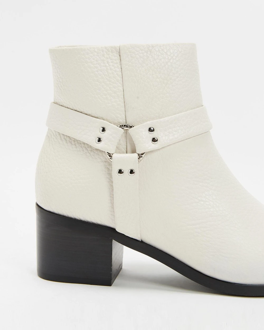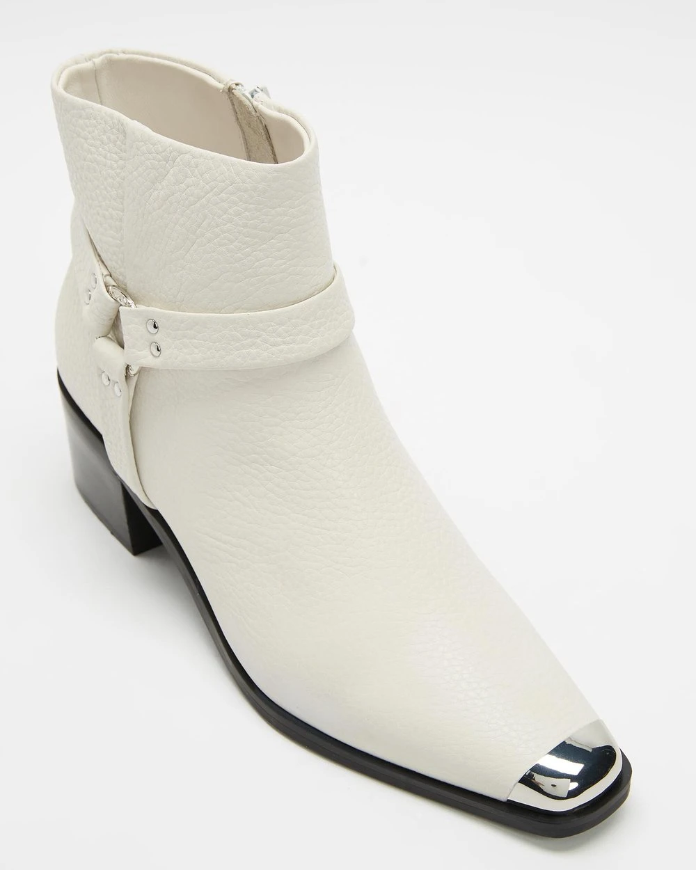 The Roo I ankle boots from Senso are defined by a silver-toned metal toe cap and harness-style overlay to the ankle.