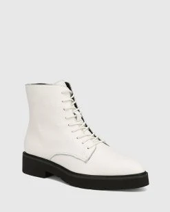 Wittner Carlina Leather Lace Up Ankle Boots White