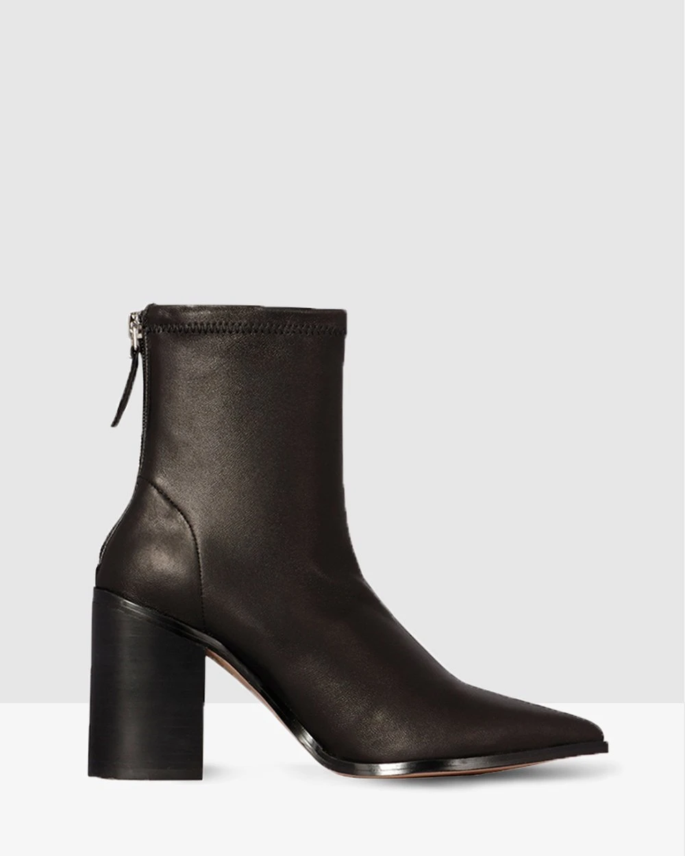 Everyone’s favourite SAYLOR by Skin footwear is back! Lovingly crafted in black stretch leather, Saylor is unique with her pointed toe, rear zip and soft sock-like upper. Pair SAYLOR with your favourite jeans or an fitted dress for the ultimate outfit of the day.