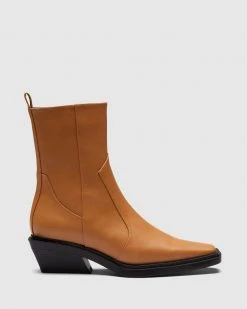 Say hello to this seasons statement ankle boot – Kaia by Therapy! With her square toe, angled leather veneer stacked heel and extended edge for that modern western look you will be wearing Kaia with everything this season!