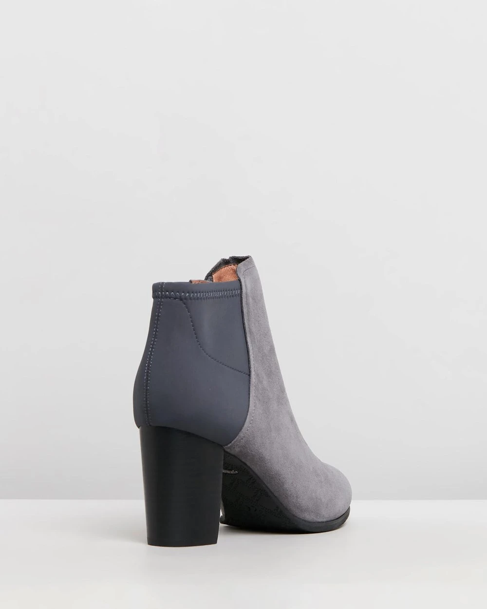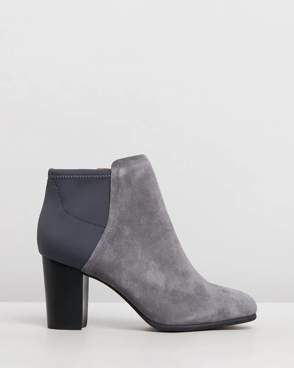 The Vionic Whitney Ankle Boots deliver a sophisticated remix on the heeled ankle boot tenet, offering a genuine suede upper with a contrast neoprene heel insert and a sturdy 8.5cm block heel.