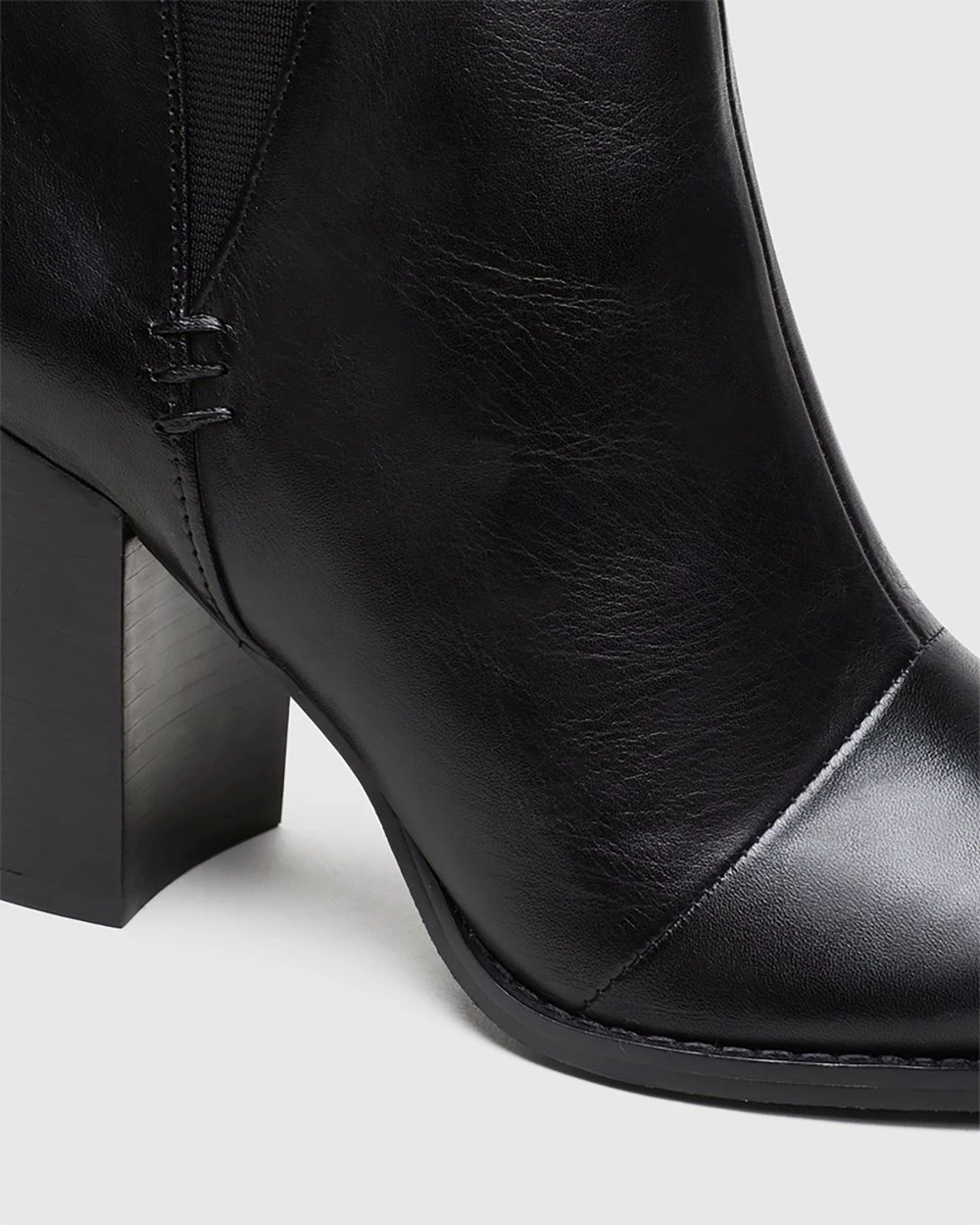 A tried and true favourite, the Honesty Block Heel Gusset Ankle Boots by Wittner in black leather are one Chelsea style you can’t be without. Featuring a modern V-shaped gusset, almond toe and close ankle fit to keep your legs looking long, these shoes are finished with a sturdy block heel and padded footbed to ensure they feel as good as they look.